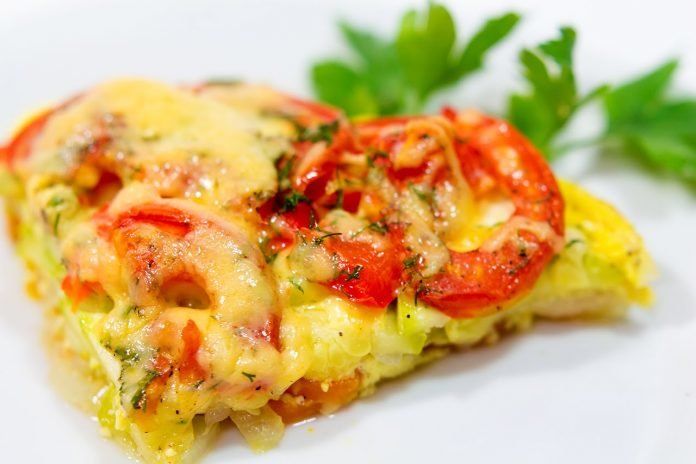 Step 4 Grate the cheese on a medium grater, sprinkle on top and pour the vegetables with milk-egg mixture.