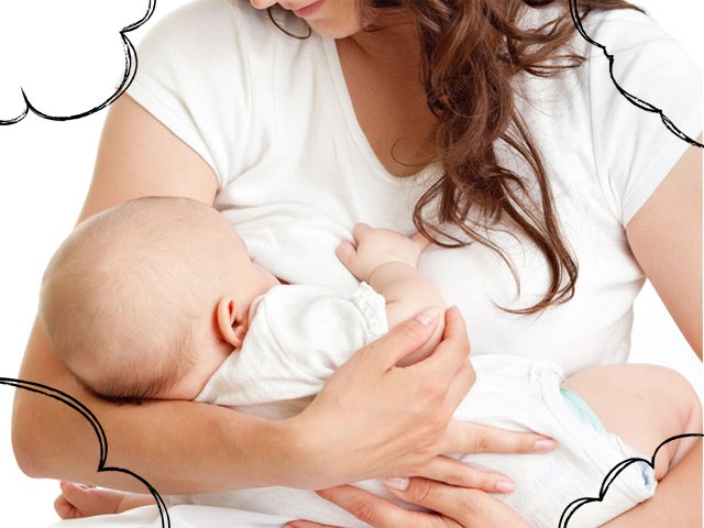 - Feeding a girl with breast milk