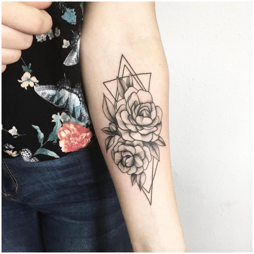 The forearm is considered one of the least sensitive to pain parts of the body, which is why those girls who are afraid of pain often choose the shoulder for the first tattoo.