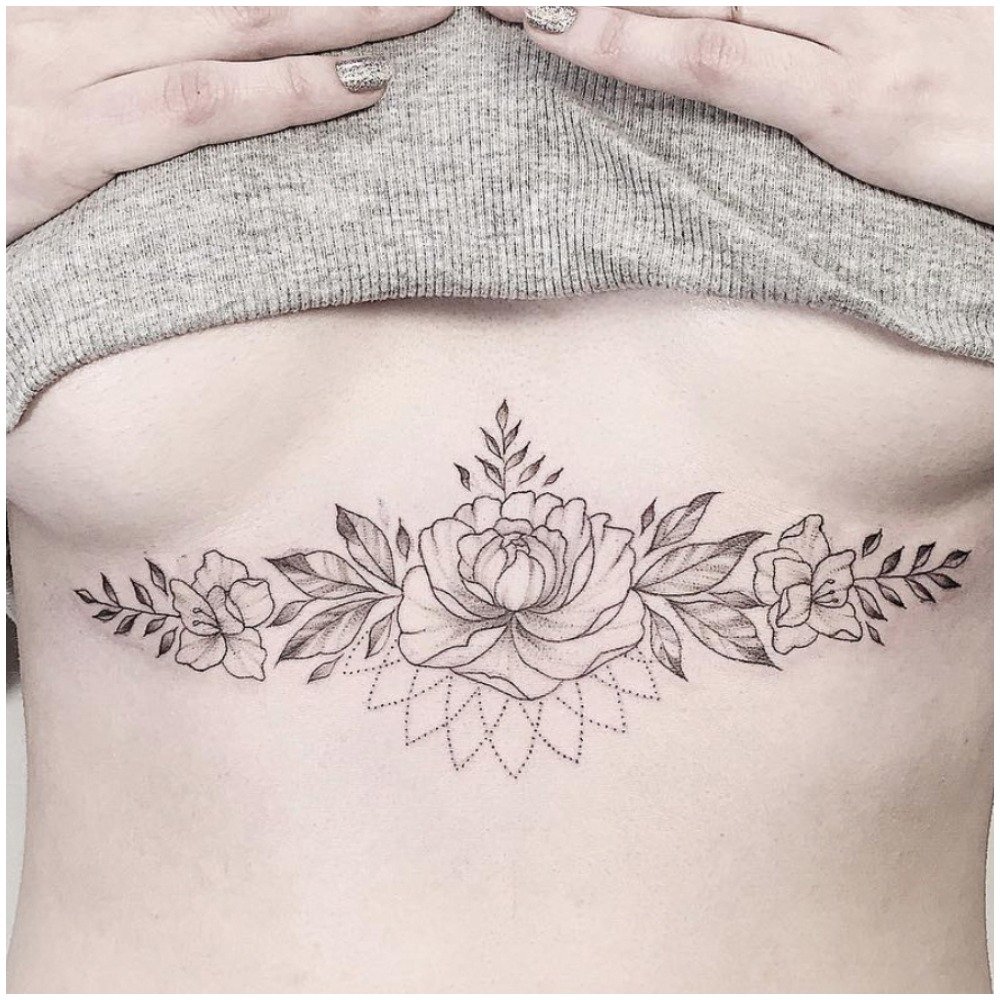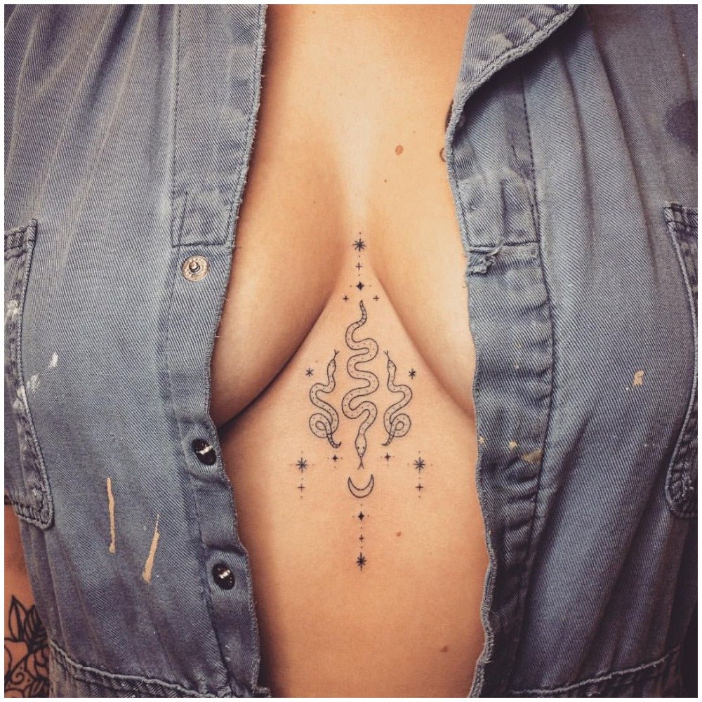 This helps to give the tattoo a uniqueness, and the girl to achieve individuality and create an extraordinary image. Moreover, tattoos under the chest look very cool in the summer on the beach.