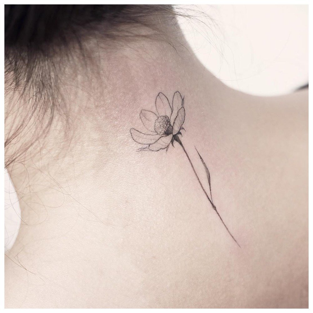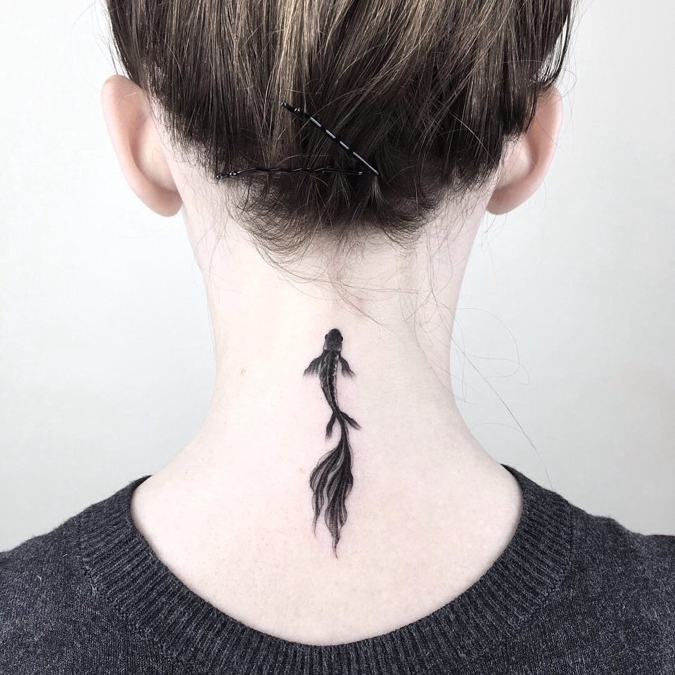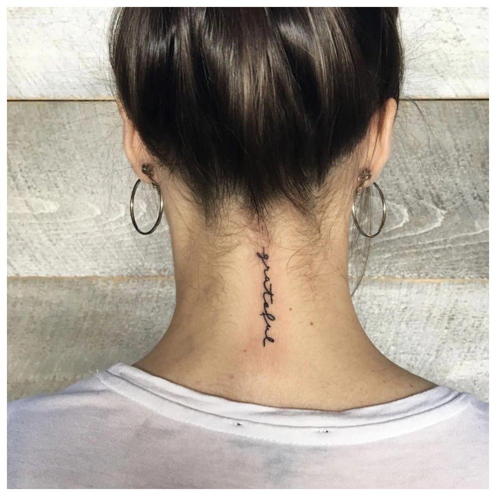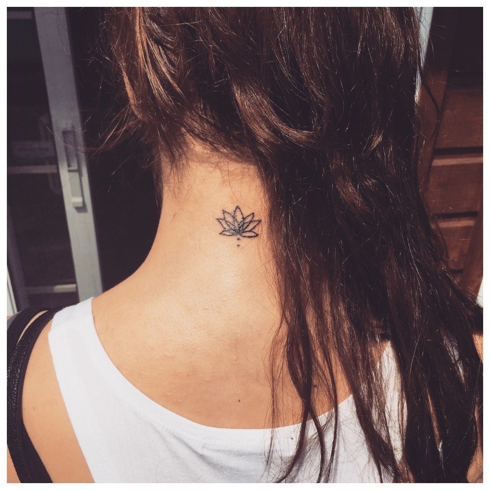 Back of the neck most often used in order to put a personal inscription or secret symbol. Girls, if tired of a tattoo on the back of their neck, will be able to hide it under their loose hair.