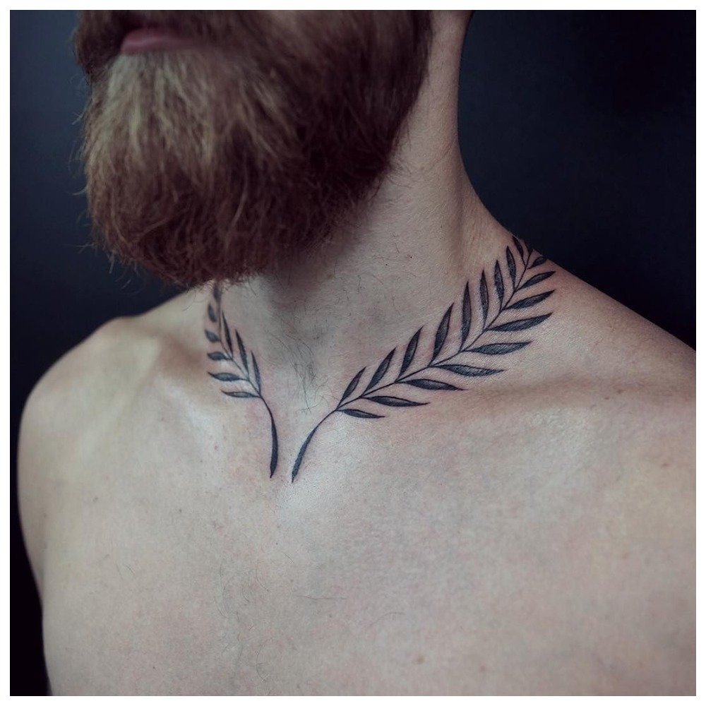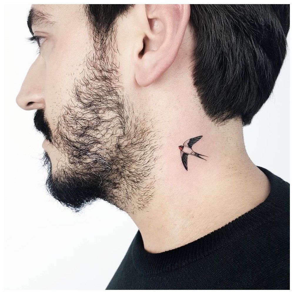 In front of the throat, the pattern covers the bristles. Men get a tattoo on this part of the body if they know for sure that they will constantly shave. Otherwise, there is no point in such a tattoo.