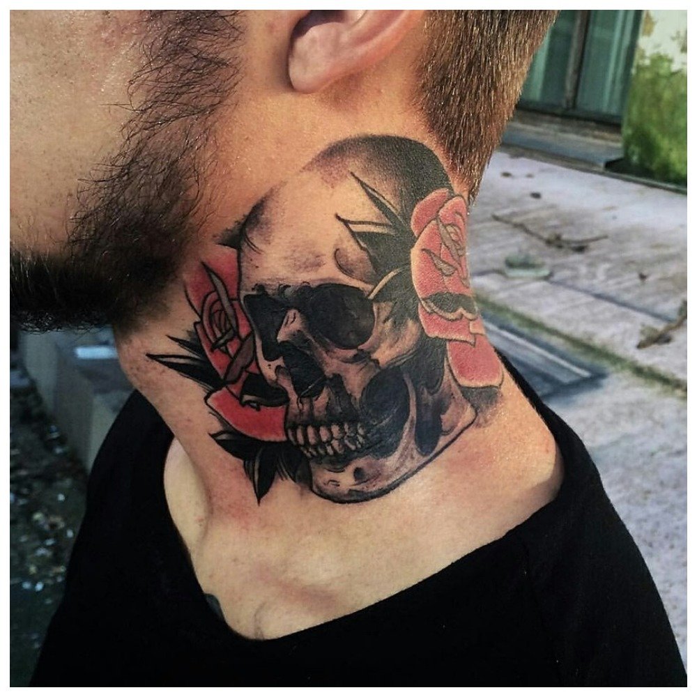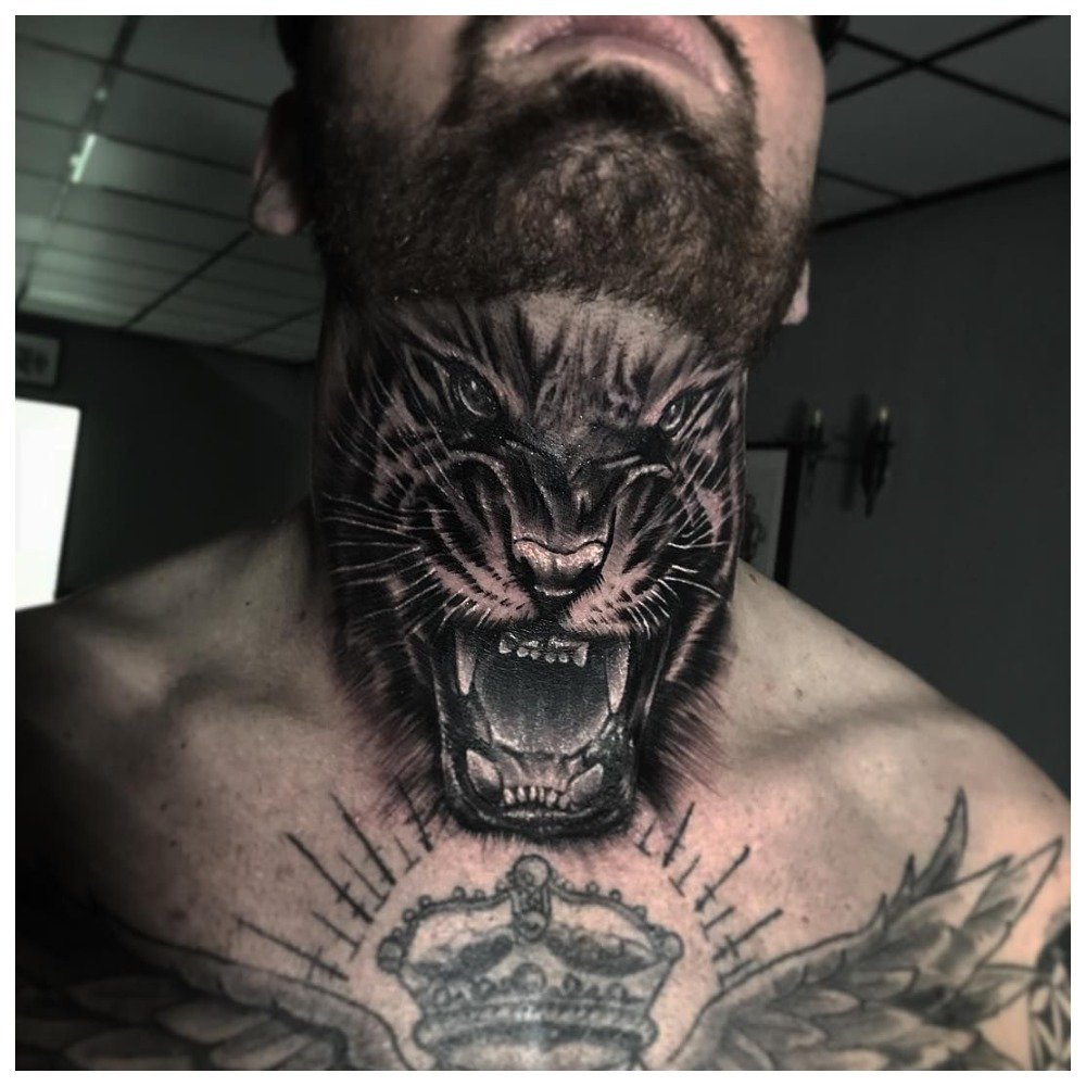 Throat, or front of the neckis considered a more extravagant place for tattooing. Usually a man gets a tattoo on his throat, as it looks aggressive and does not suit girls very much.