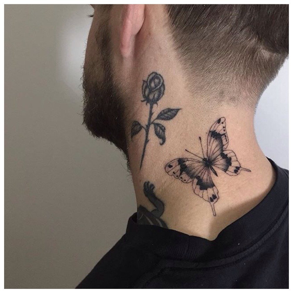 Men most often get tattoos on the sides - left and right. At the back of a man’s neck, one can rarely see a tattoo, except that it will be on top or part of another, stretching from the back.