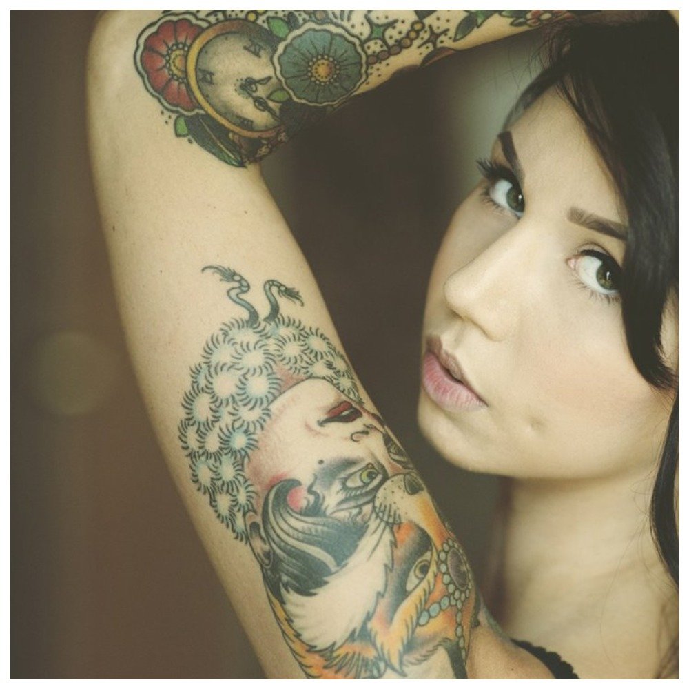 Female arm tattoos are always a position. Such girls are brave, freedom-loving, they have something to say to this world. A large tattoo on the whole arm will surely attract the attention of others, and the girl knows this. She is not afraid of the condemnation of others, and is always ready to justify the choice of just such a tattoo.