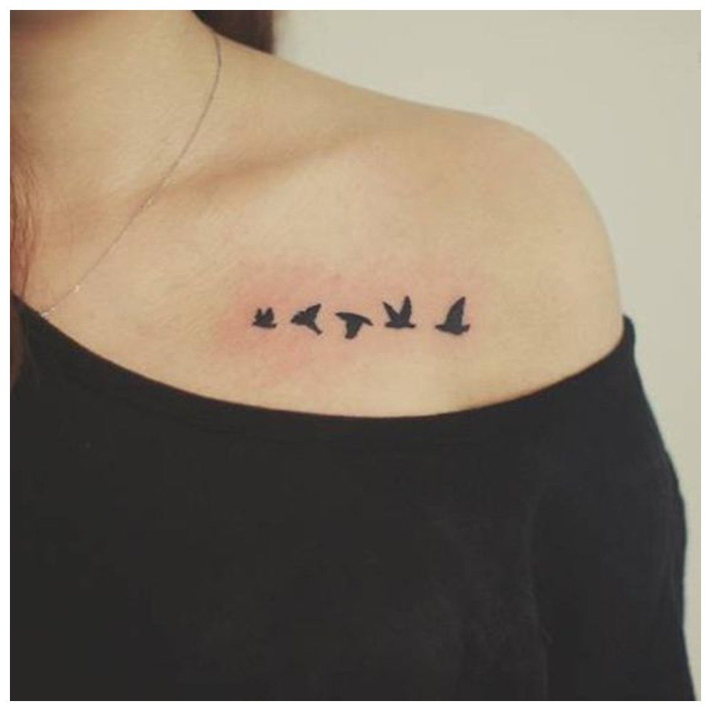 Birds - A favorite topic for girls who make a tattoo on the collarbone. The soaring bird symbolizes the love of life, freedom, the courage to face any difficulties. Subconsciously, a bird is associated in humans with spirituality and kindness. For example, pigeons are preferred by girls who strive for a peaceful family life.