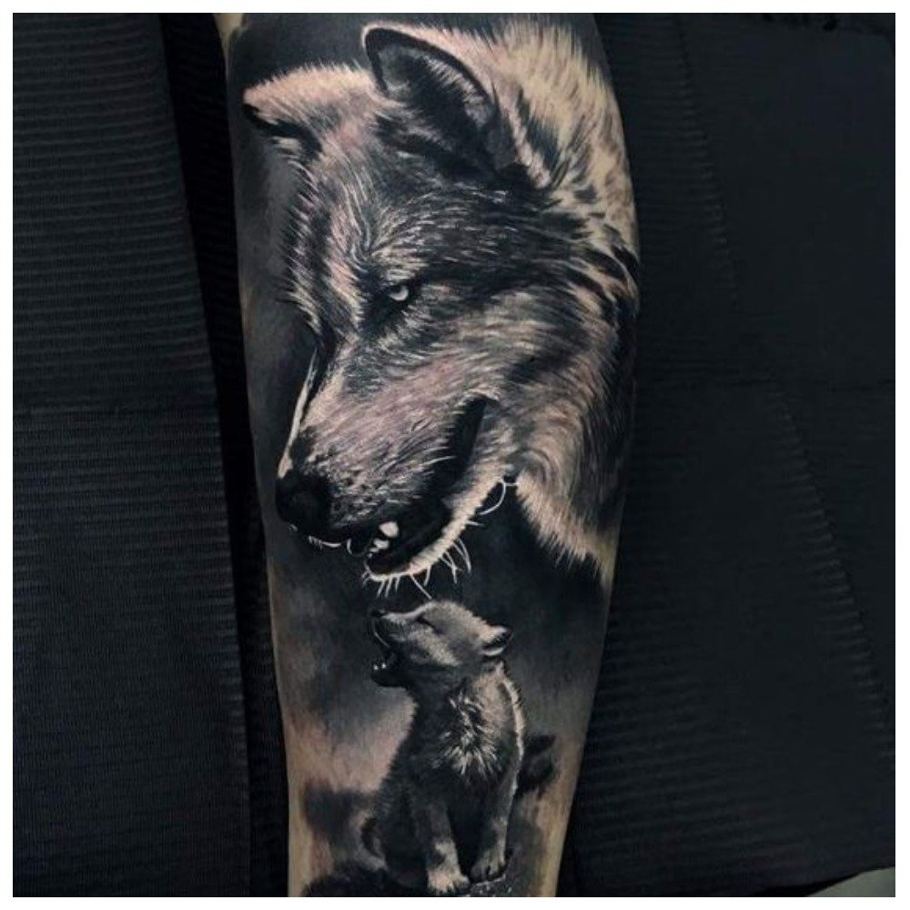 For large drawings, a man should choose his back and shoulders. Smaller wolf tattoos are printed on the forearm and leg. Men love to make wolf and chest tattoos, associating themselves with this predator and wanting to demonstrate their strength as well.