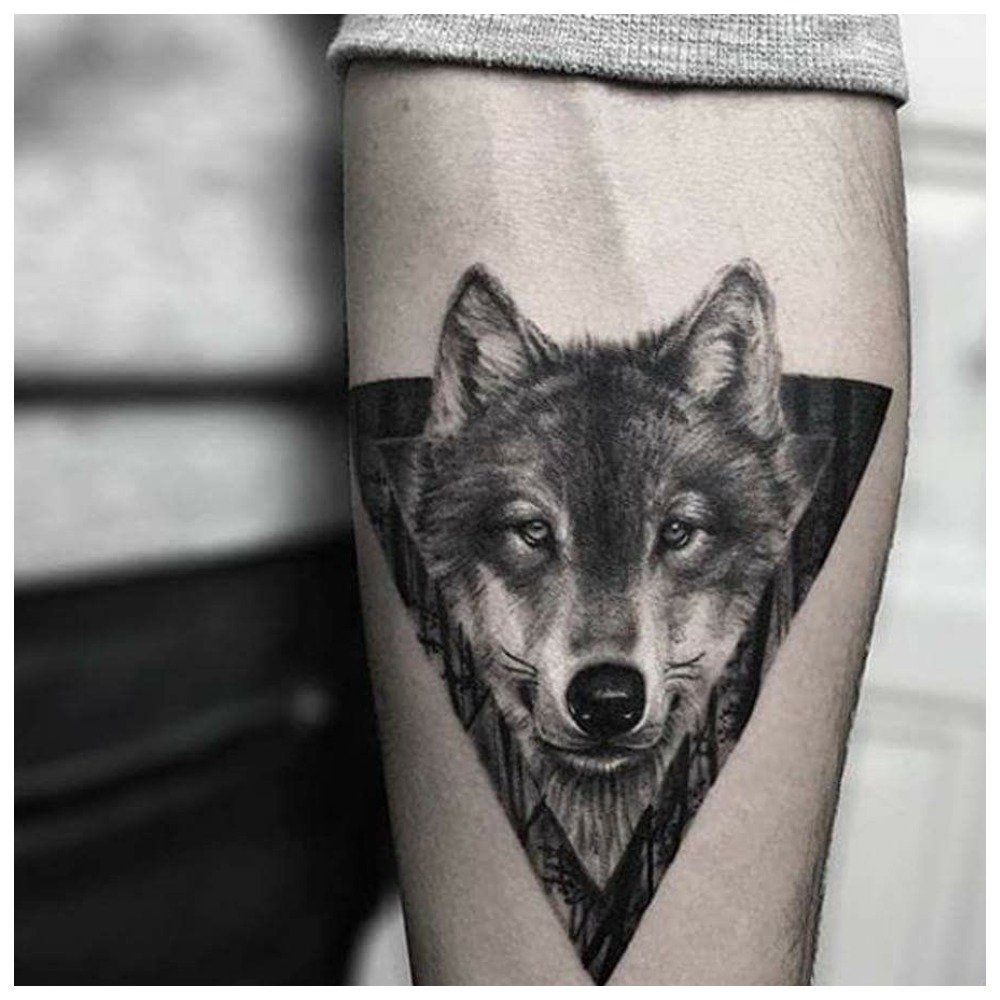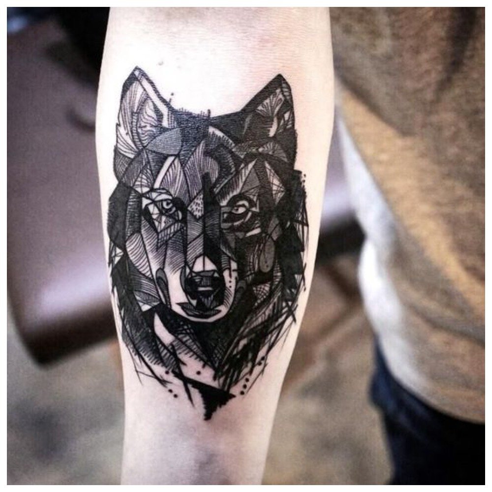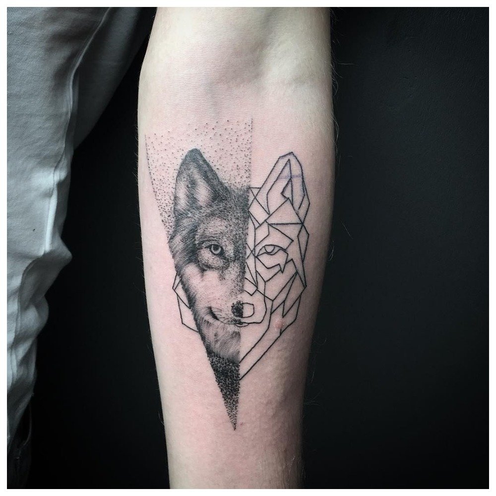 Nowadays, wolf tattoos are fashionable, in which two styles are mixed - geometry and realistic tattoo. Such a head of a wolf looks very impressive, and looks fresh and original.