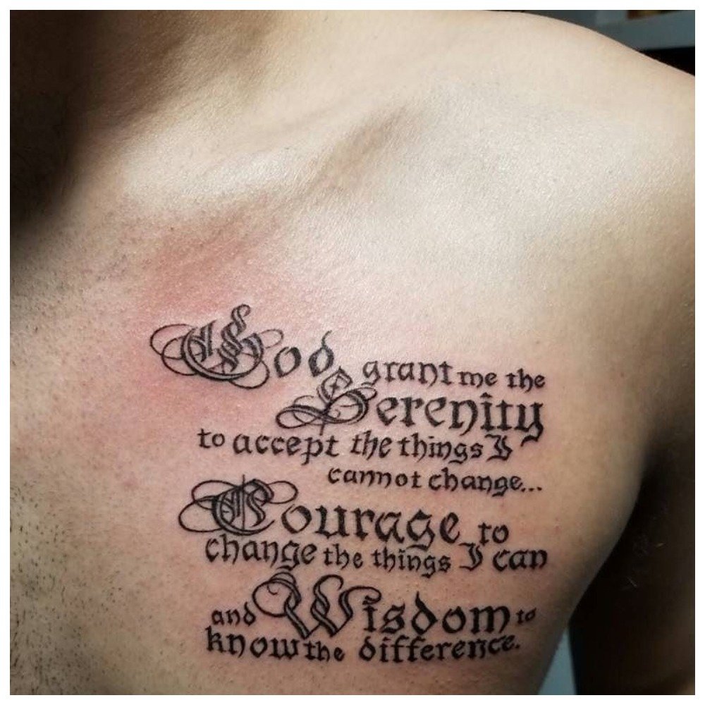 Tattoos of the inscription on the sternum with meaning are chosen by conscious men who do not need just a drawing. After all, a tattoo can affect our energy field, so it is important to familiarize yourself with the meaning of the inscription and make sure that the value suits you.