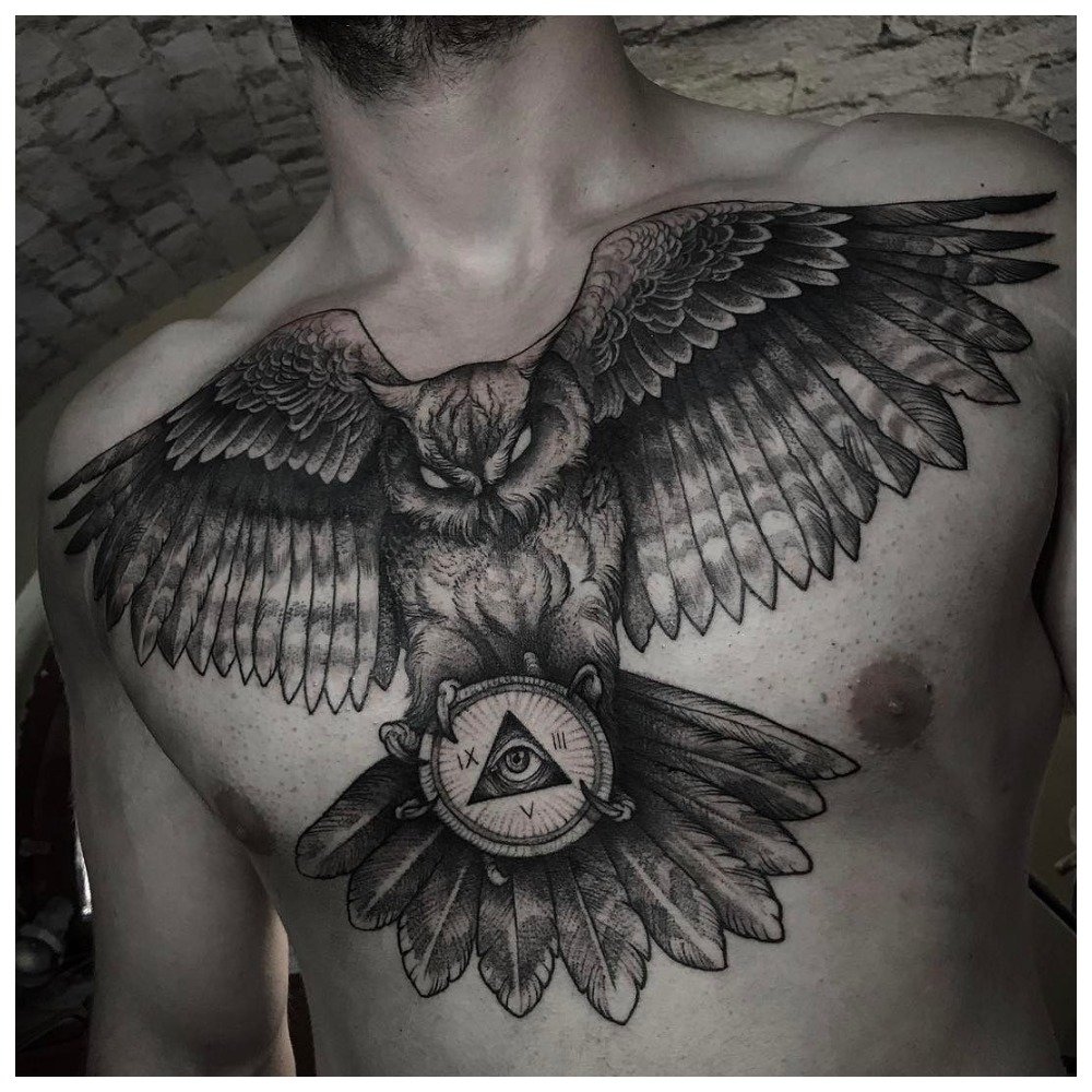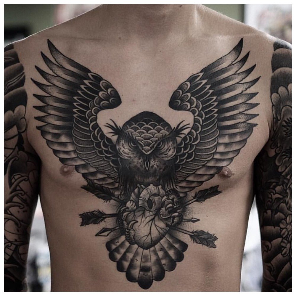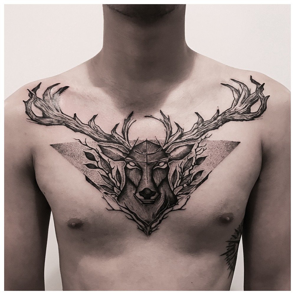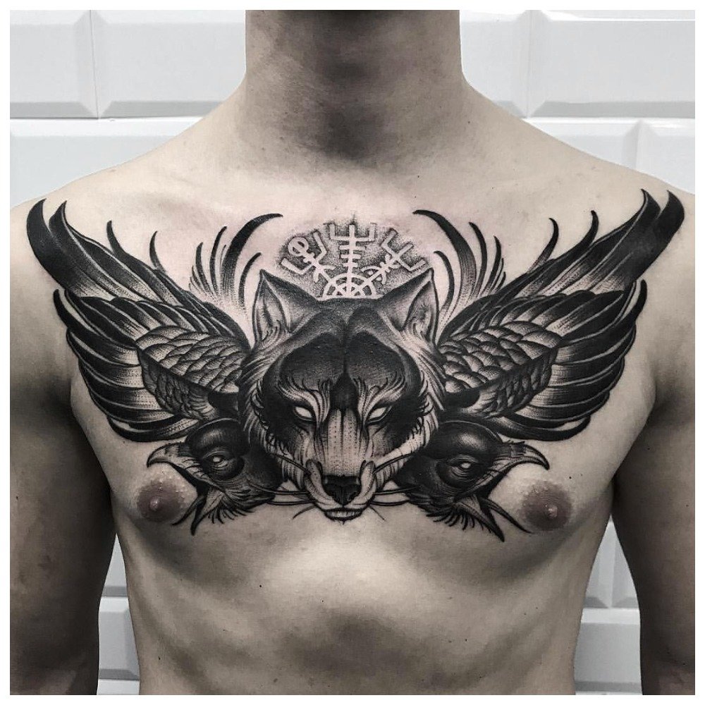 Of course, animal tattoos are the most common pattern for a man’s sternum tattoo. Wolf, lion, birds - all this is welcome and does not go out of fashion.