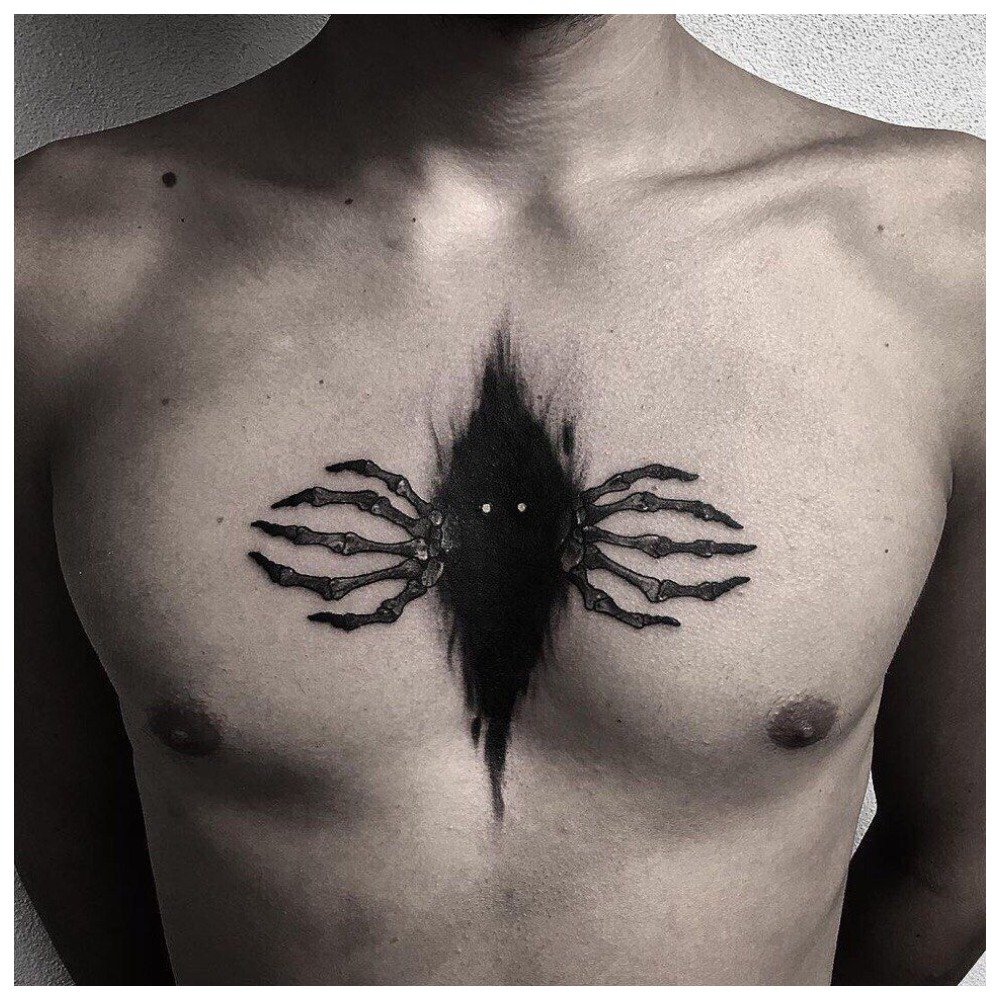 Men make small tattoos on the sternum mainly for themselves, and not for demonstration to others. Therefore, such drawings are often seen only by the closest people, and the meaning of the drawing is very personal.