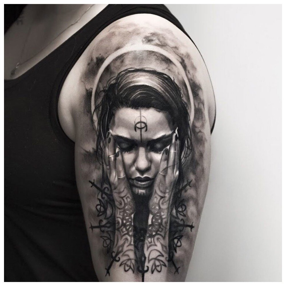Among the most popular and fashionable techniques for men's tattoos on the shoulder, the following stand out: