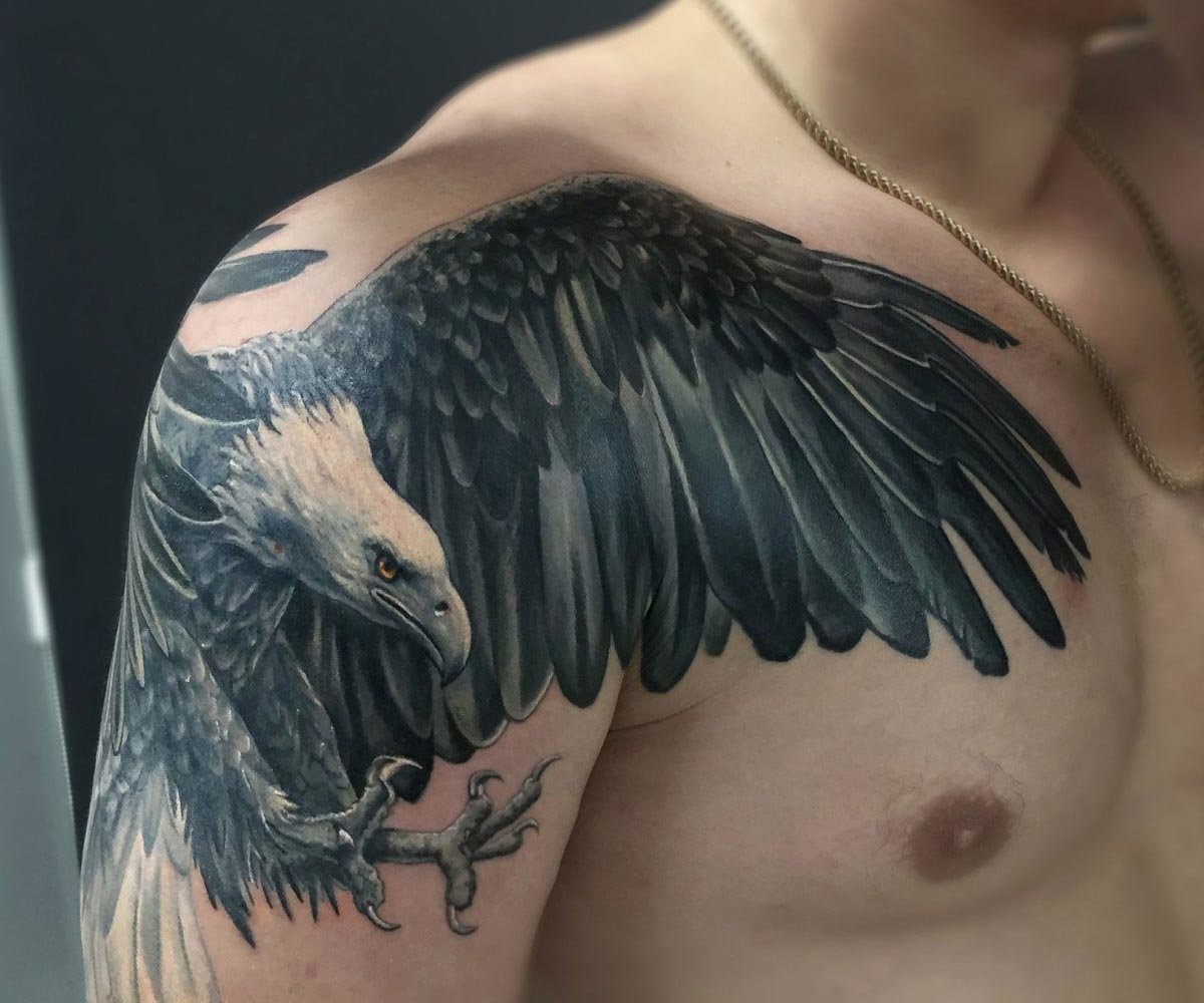 - Also, if desired, the tattoo on the shoulder is easier to supplement and can always be supplemented with other elements on the shoulder blades and chest.