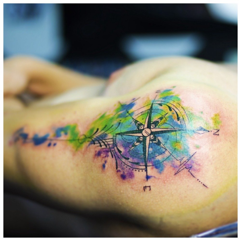Watercolor technique is a combination of bright rich colors and delicate work. Moreover, she can have a tattoo in this style, both with a clear contour and with a blurry one. Especially interesting are the drawings made by "watercolor" spots.
