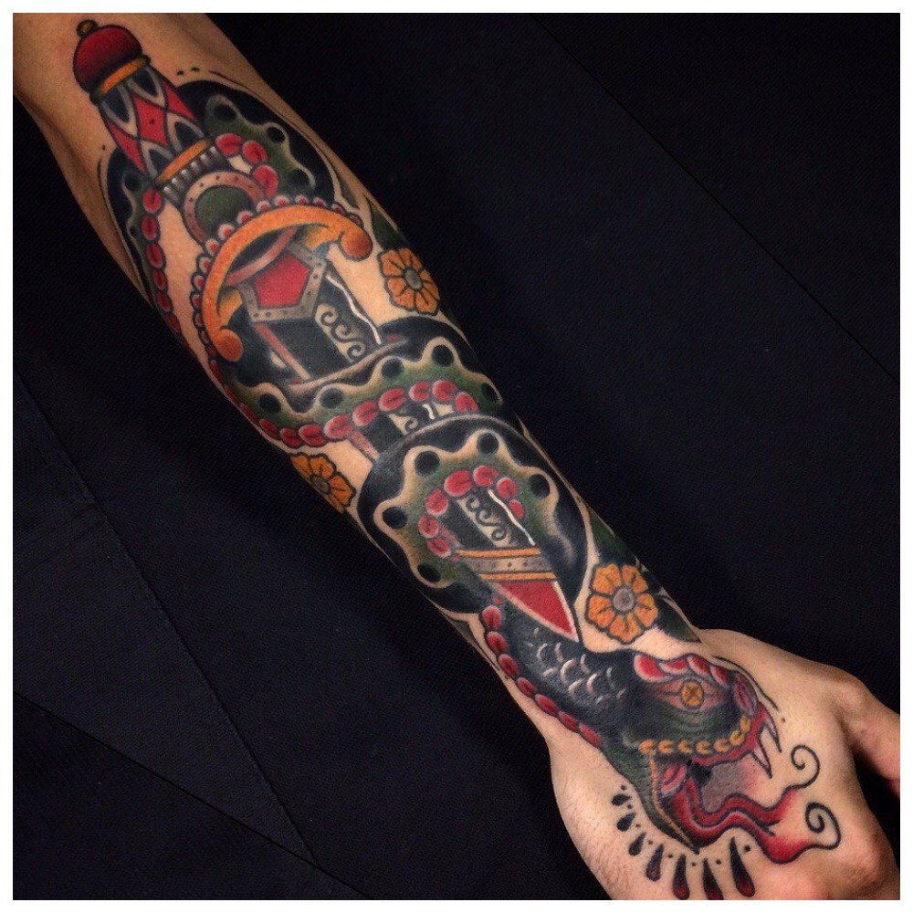Cool old school style tattoos for men