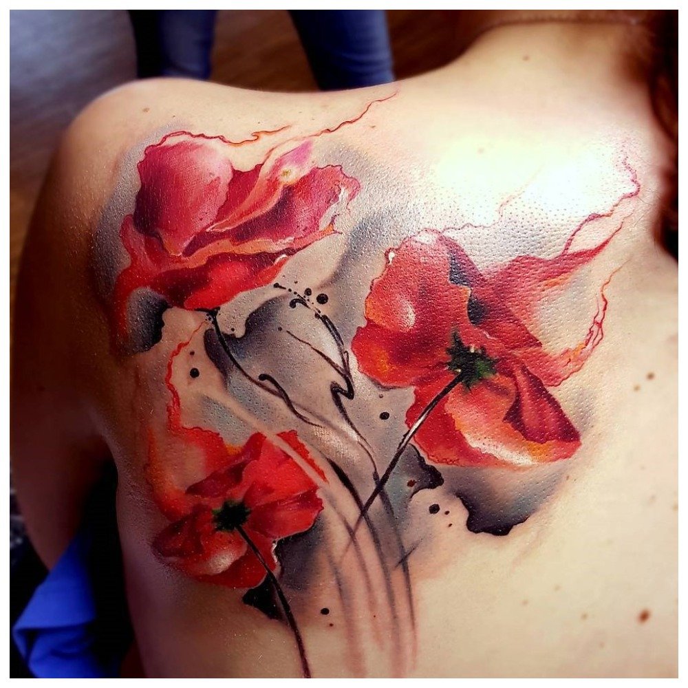 Also, a watercolor tattoo can have a clearly defined contour, but most often it is drawn in its relative style from a blurry outline, spots, strokes and blots. It all looks original and fashionable.