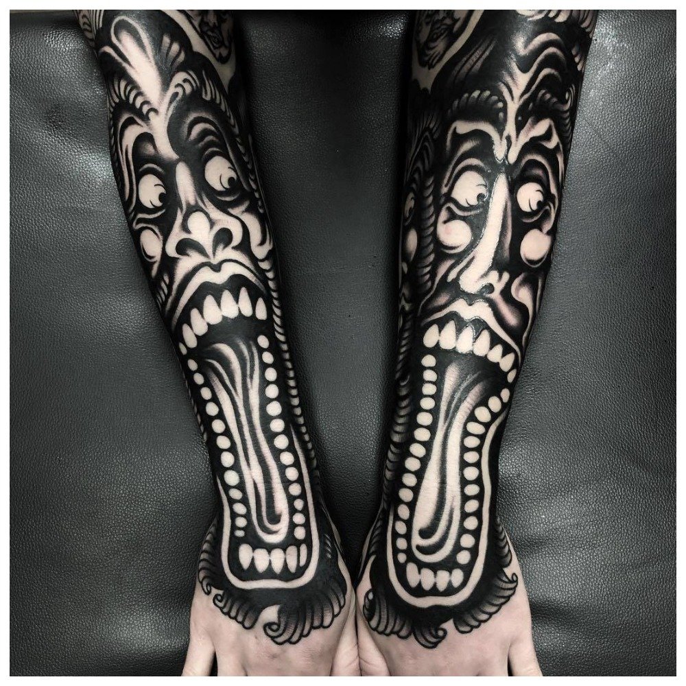 Blackwork is also successfully used in other styles: ethno, Maori, biomechanics.
