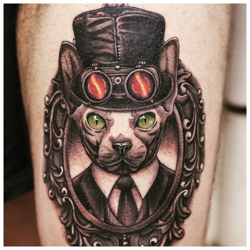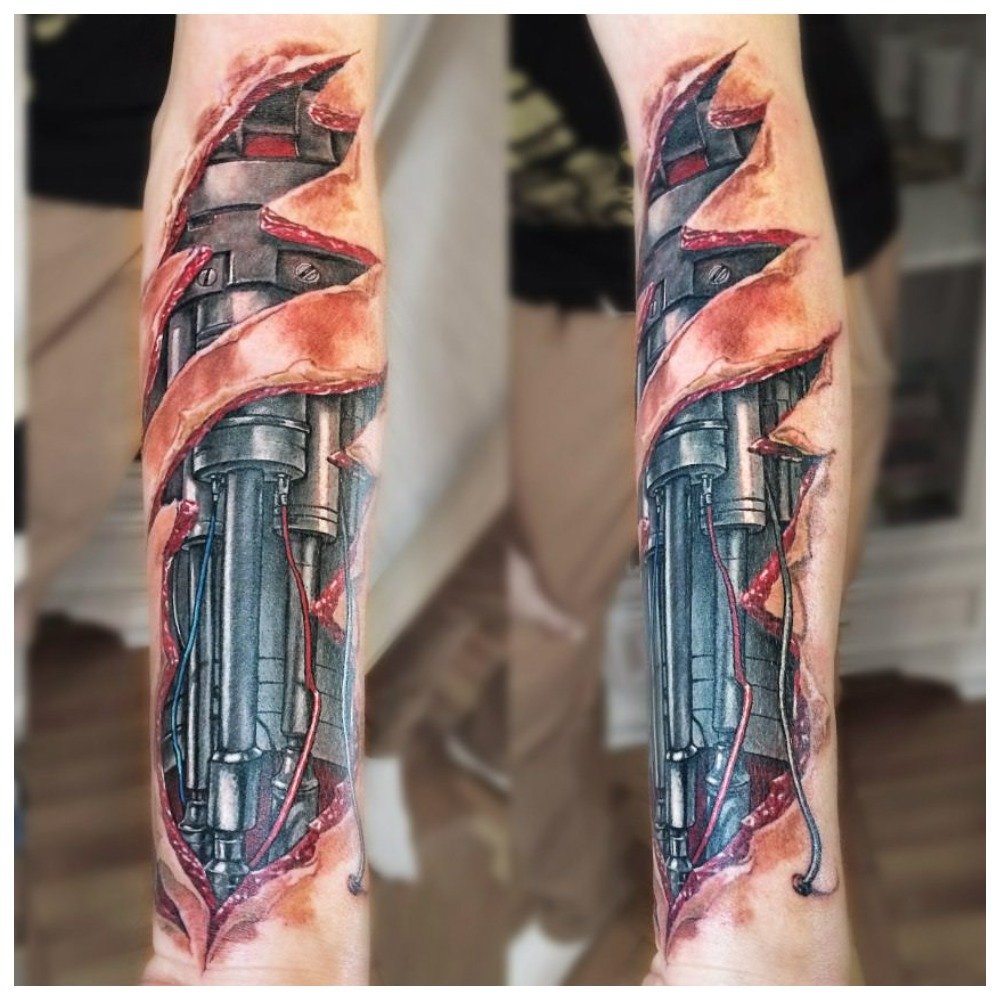 Steampunk is a well-known direction in literature and cinema, which migrated into fashion, and then the style of tattoos. In this technique, the human body appears as a biomechanism. Therefore, it is very easy to confuse it with biomechanics.