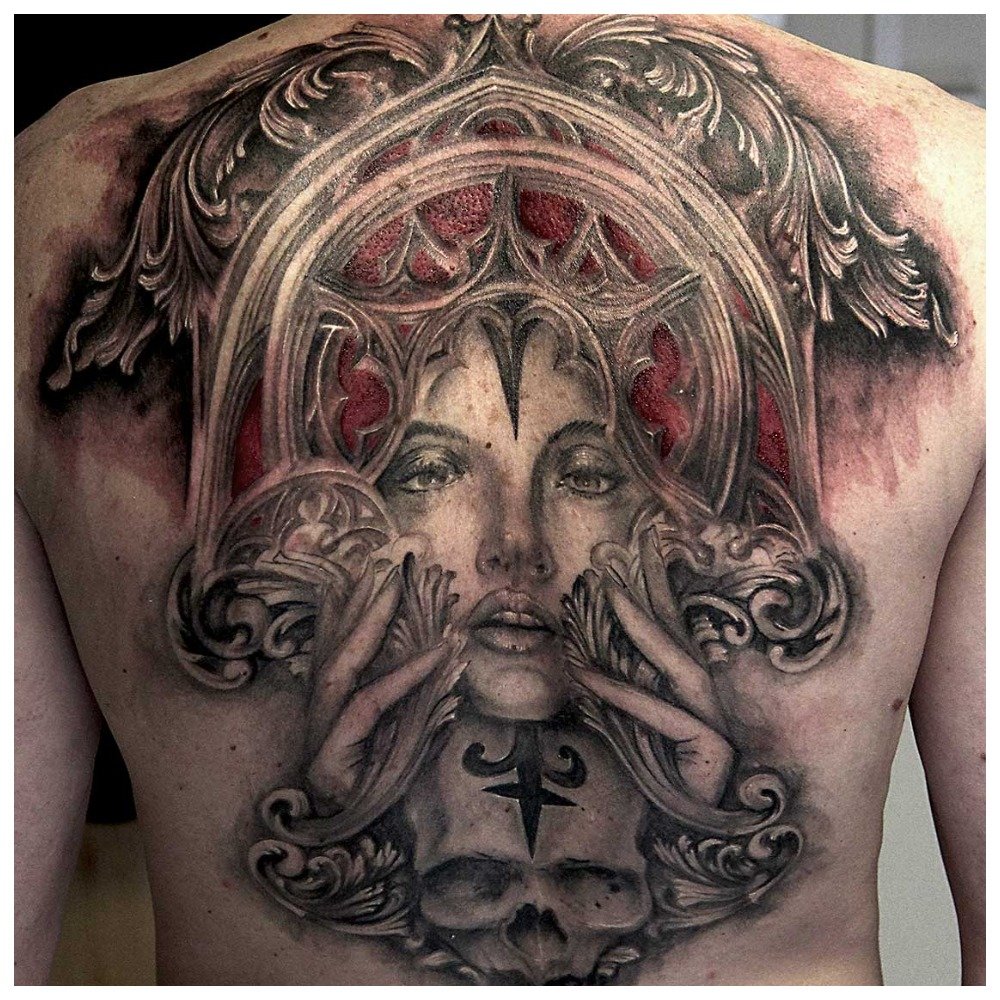 Gothic style has been known for a long time, it was especially common in 2006-2007. However, the fashion for Gothic tattoos has survived to this day. Gothic tattoo style is a combination of dark colors (black, dark gray, purple and red) with gloomy images. Among the top popular images of the "Gothic" technique are:
