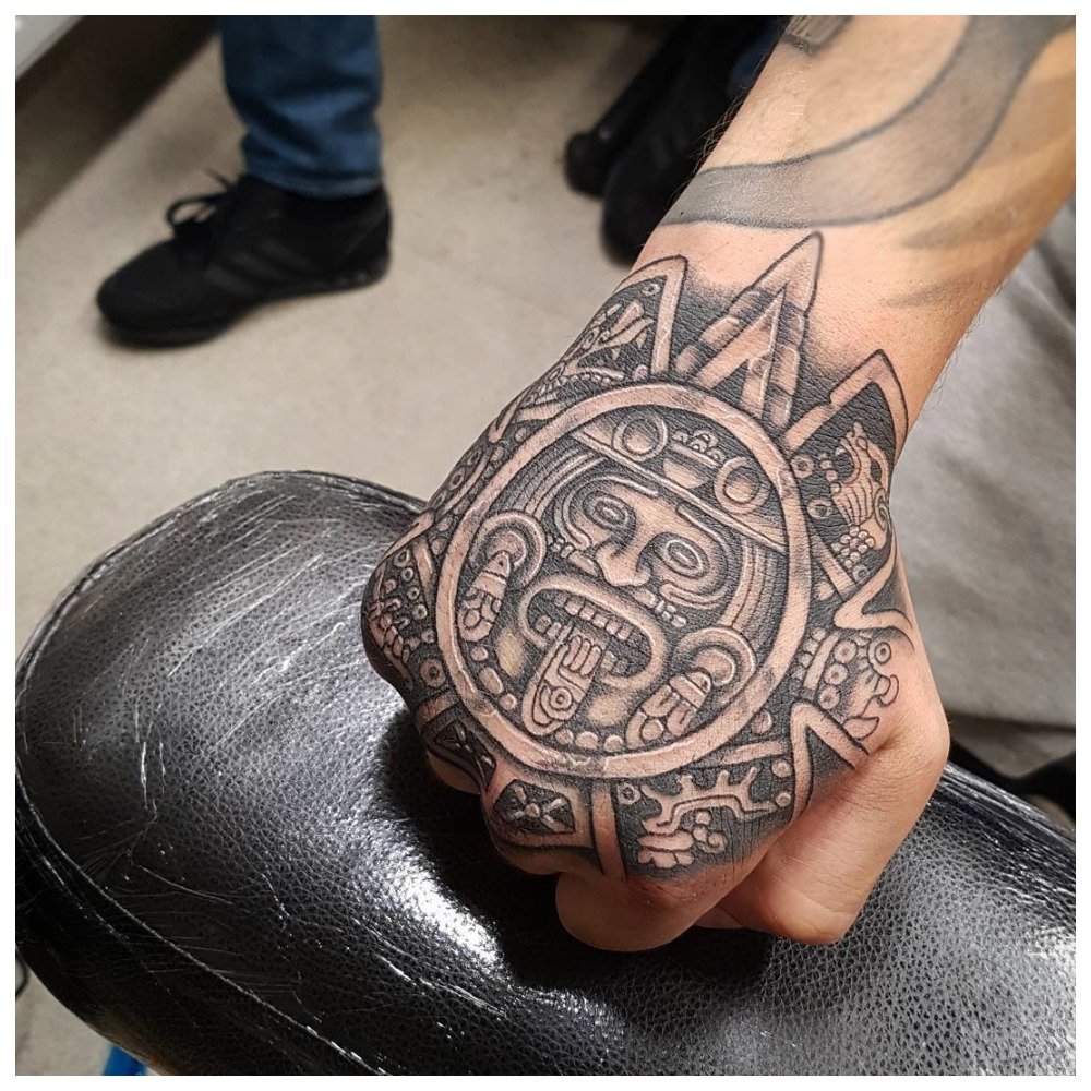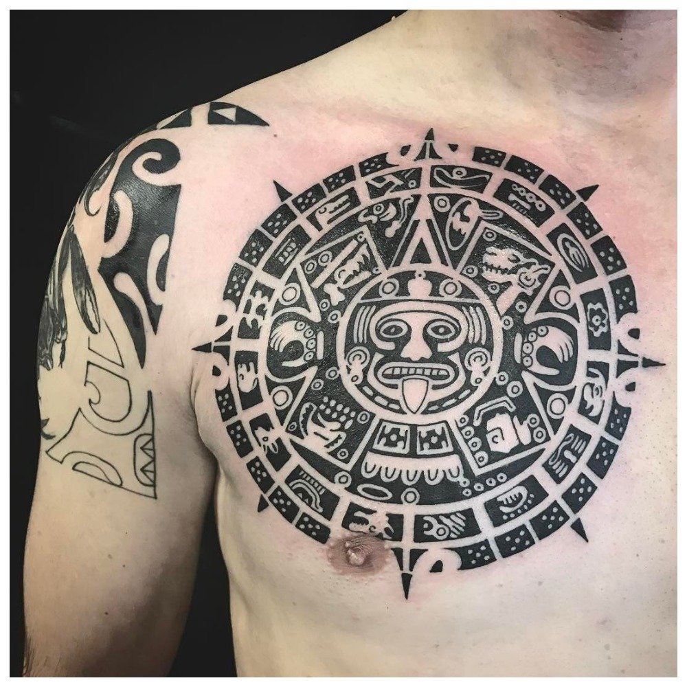 Mayans often depicted on their bodies the images of the gods in whom they believed. The tattoos were mostly black and white and very large. At the Aztecs, the style of application was different in color, tattoos could be of any shade. They also preferred drawings of bloody scenes, pyramids, skulls and the god of death.
