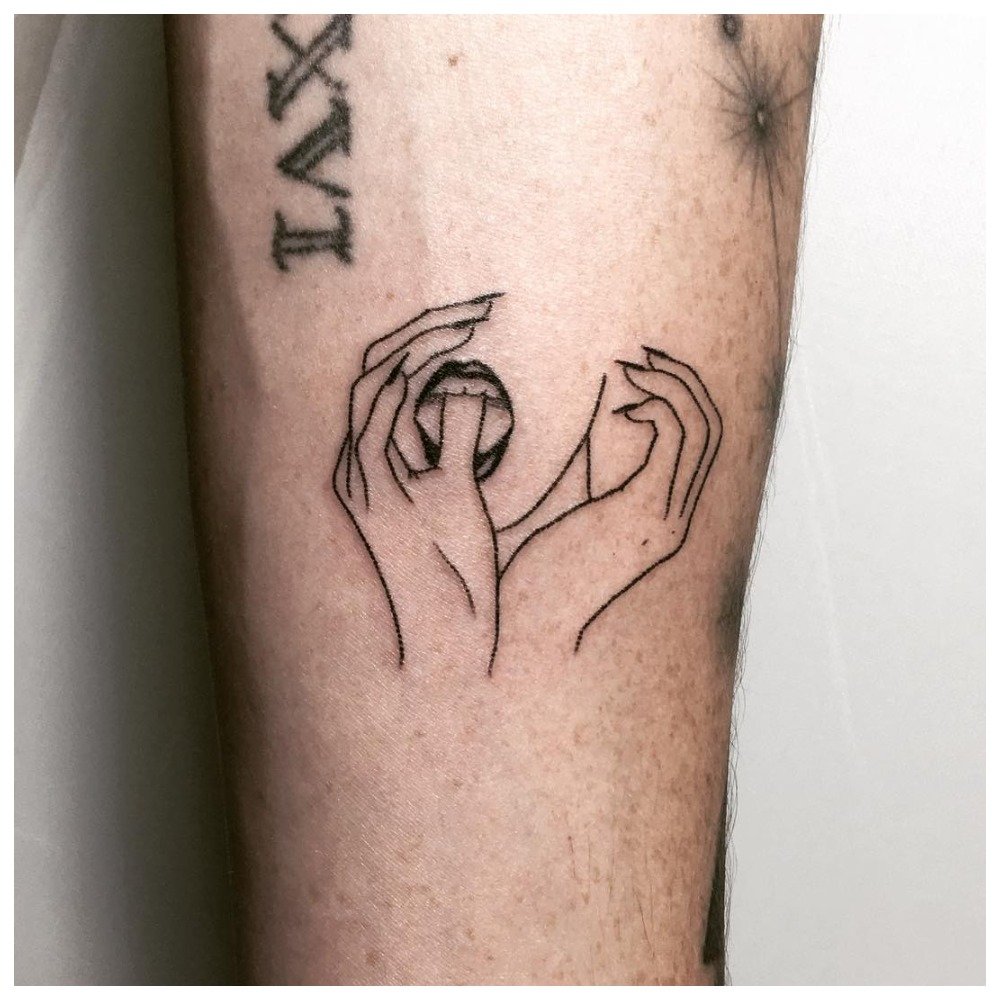 You can choose absolutely any object, even from the surrounding interior, as a sketch for a handpoque tattoo.