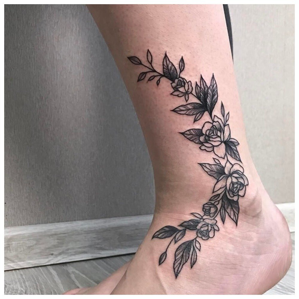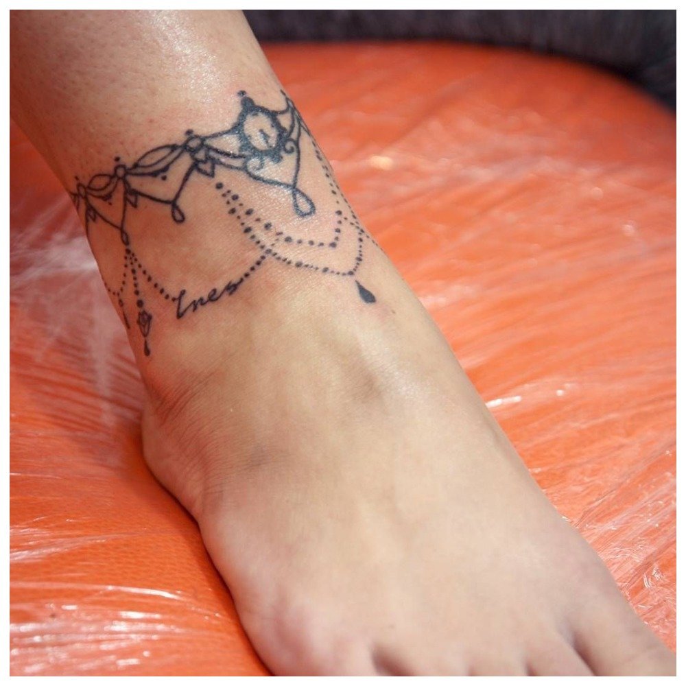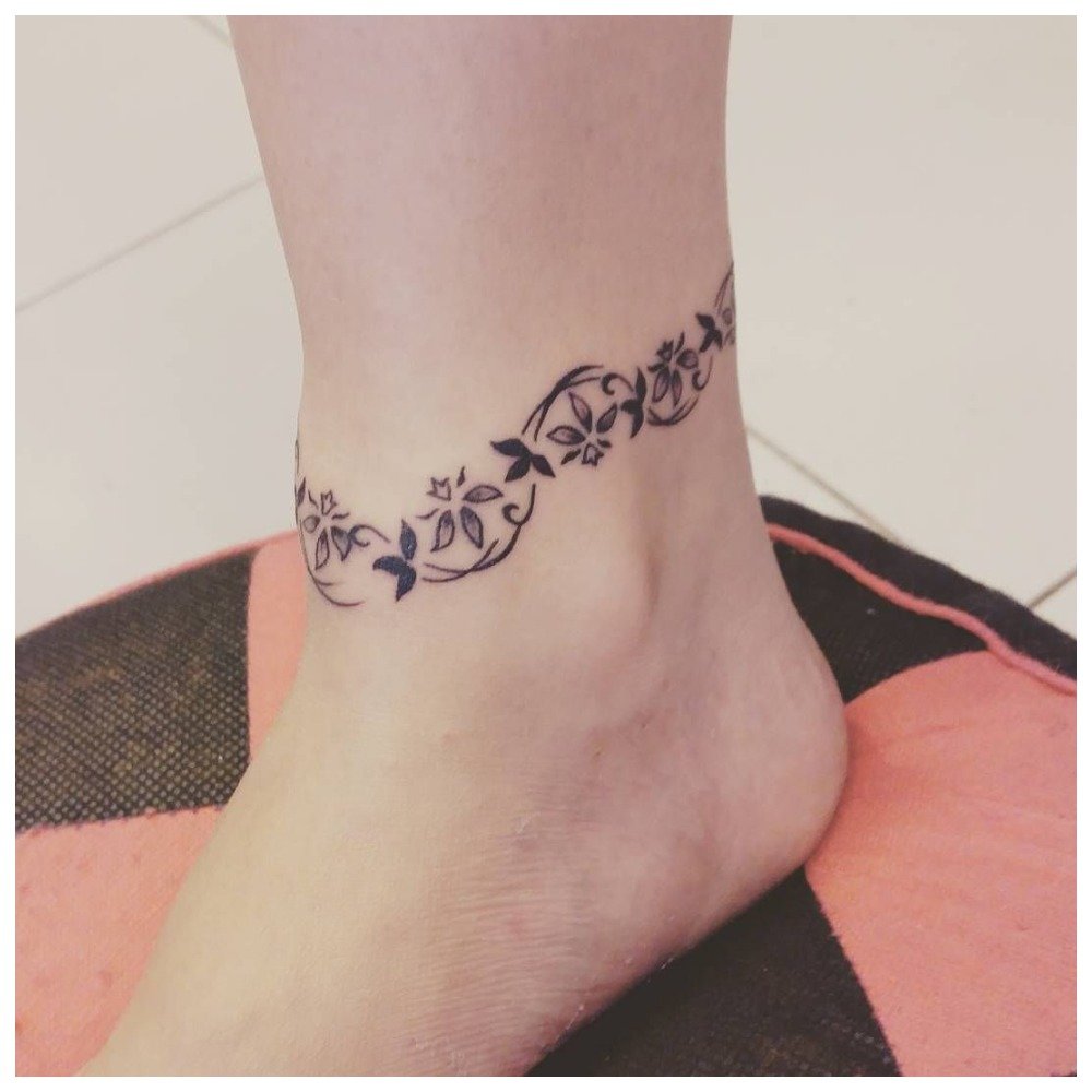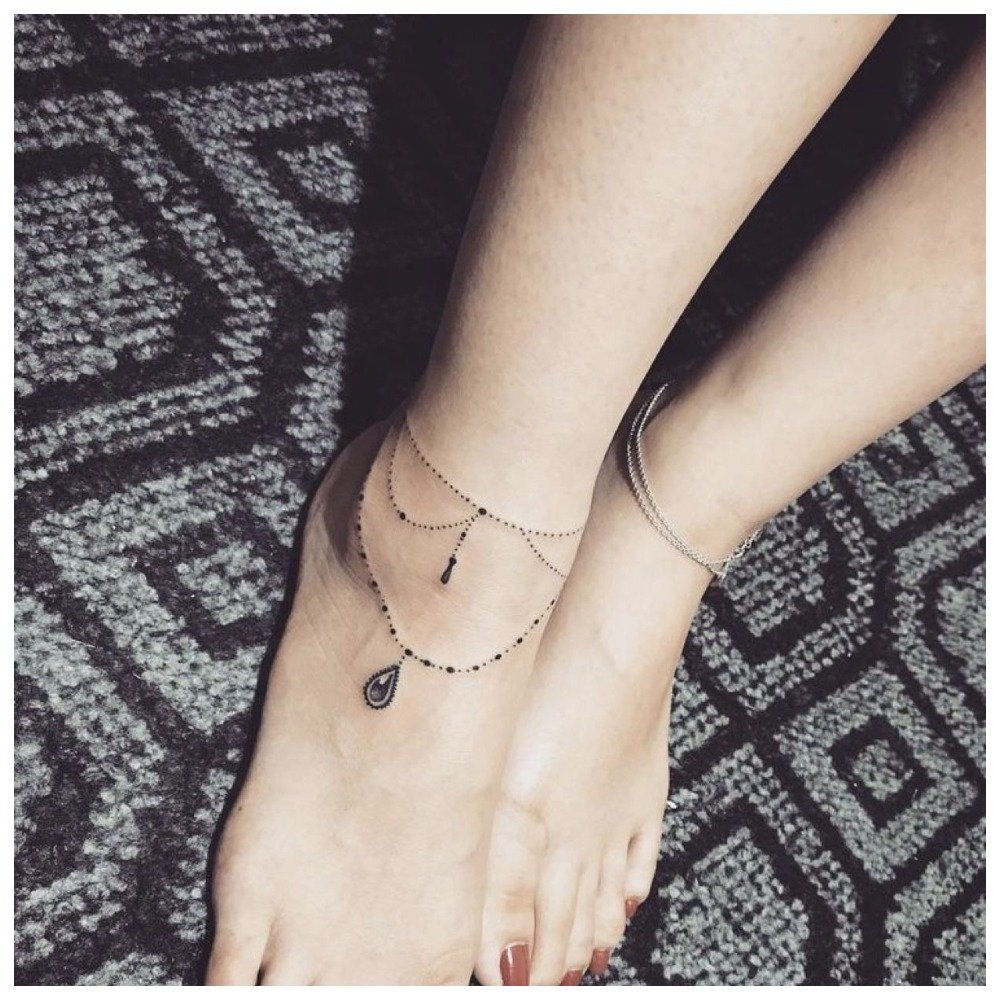 The most fashionable and feminine tattoo for the summer is the tattoo chain, which is usually located at the bottom of the leg in the ankle area. This option is also suitable for girls who prefer a romantic style of dress.