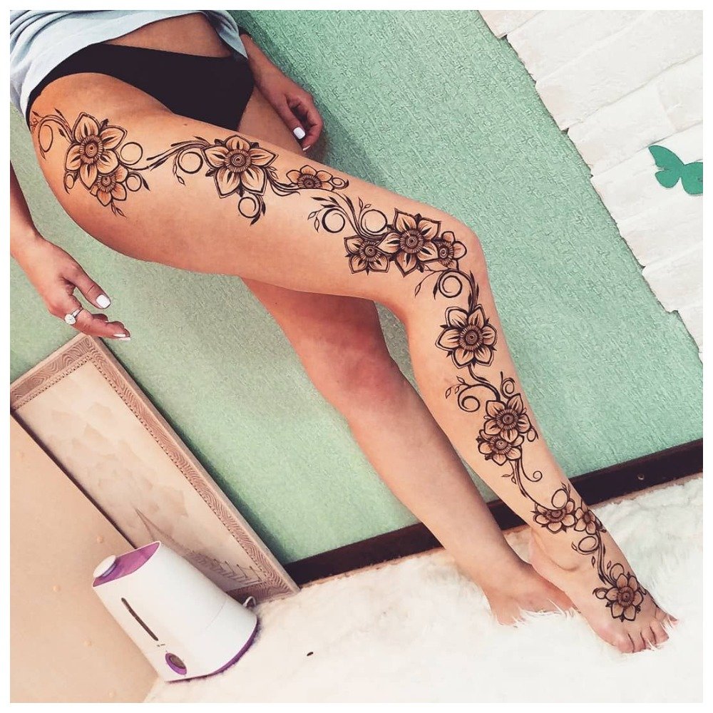 Tattoos applied to the back of the leg look very cool, mainly in the hips.