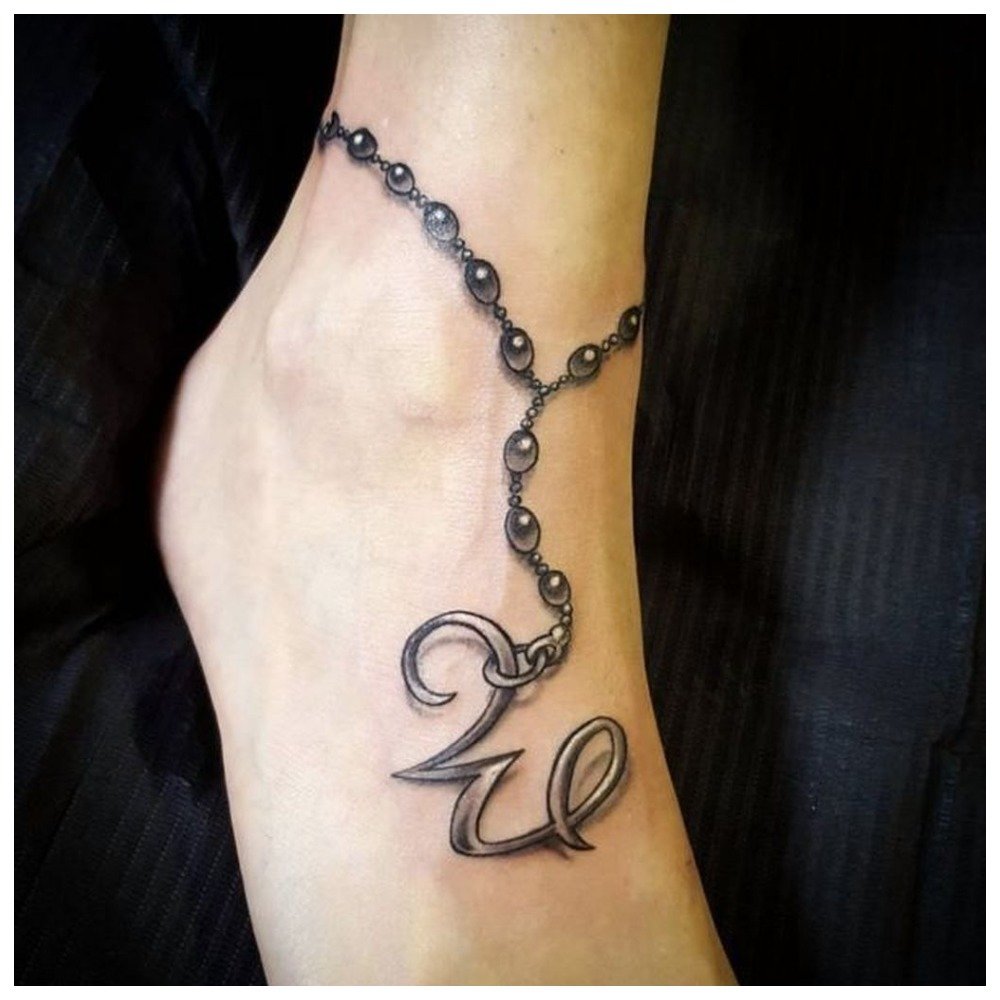 To make such a tattoo memorable, you can add various mini-elements along its entire length. They will resemble pendants. This tattoo chain is perfect for girls who prefer to wear skirts. Also, a bracelet is an ideal option for the summer season.