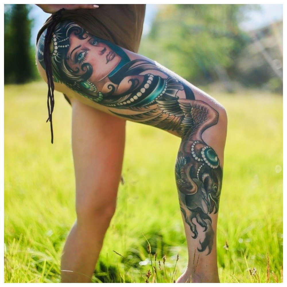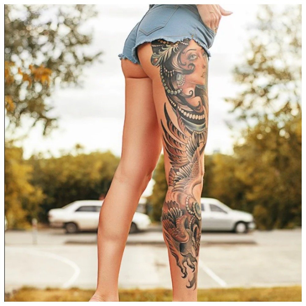 Tattoos on the whole leg are obviously intended only for persistent girls who are ready to withstand more than one drawing session and wait many hours before seeing at least some result.