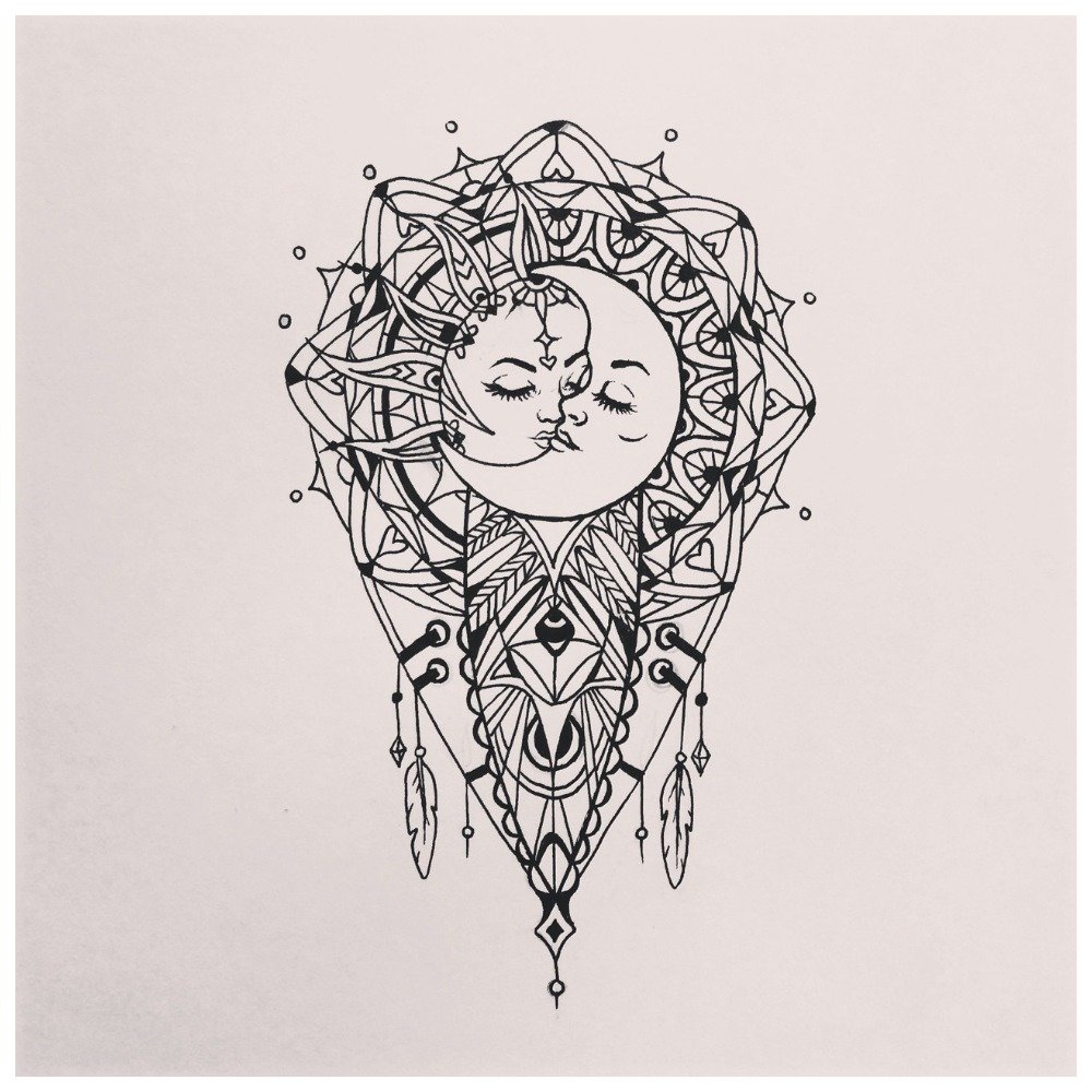 Also very popular is the image of a dream catcher. By the way, dream catchers can be performed in two techniques: ethno + minimalism.