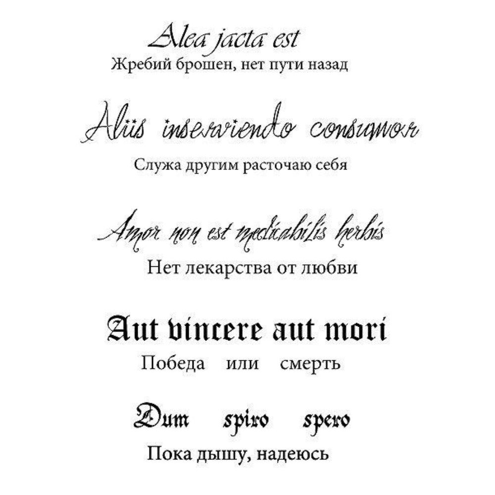 Less often, girls choose Russian or other languages. Although with the right font, any phrase will look beautiful and original. If the choice still falls into foreign languages, you need to familiarize yourself with the translation of phrases for tattoos.