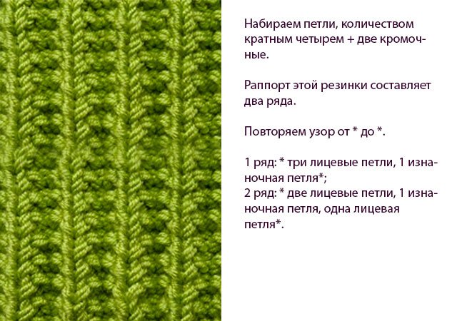 1st row - knit in sequence: 1 person. loop, straight yarn, remove the next loop without knitting while the working thread should be behind the work. Then repeat in the same sequence to the end of the row.
