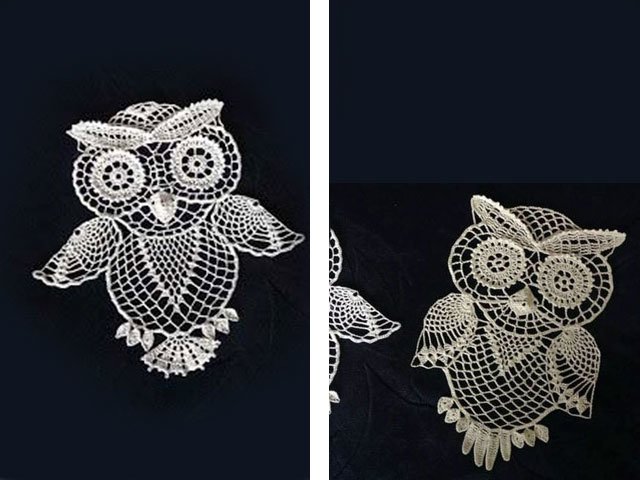 Openwork owl crochet napkin (panel)