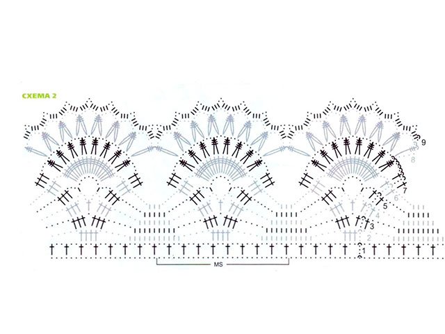 - For lace - the number of P. is a multiple of 27. Circular R. in C / X 2 = repeat 1 time from 1 to 9 K.R.