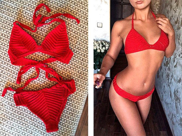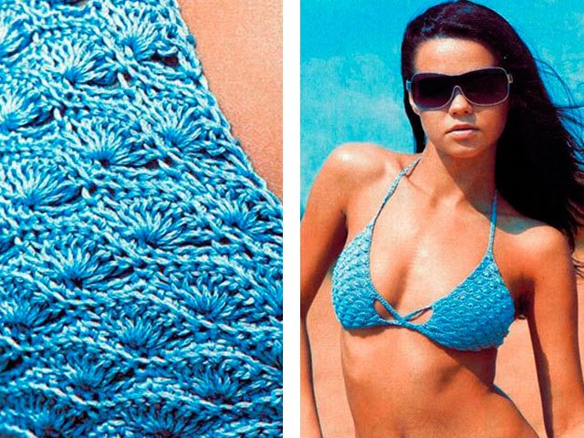 For the next master class for beginners, we’ll take one color of yarn. It consists of a bodice and panties - a bikini is a great option for the hot season. Such an instance is very suitable for ladies with large breasts - it’s easy to adjust the size here, knitting allows you to do this. Best of all, if you’ll do it already in a ready-made swimsuit, as if checking, or draw a pattern.