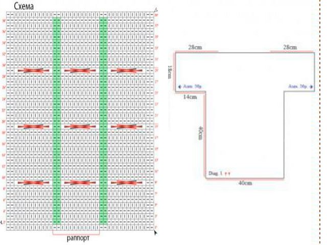 - Sleeve of 35 P. and 6 R. the main pattern. K.P. and 6 Dos. Uzora, 31 P. braid, central 9 P. P. P., 6 P. main. Uzora, K.P.