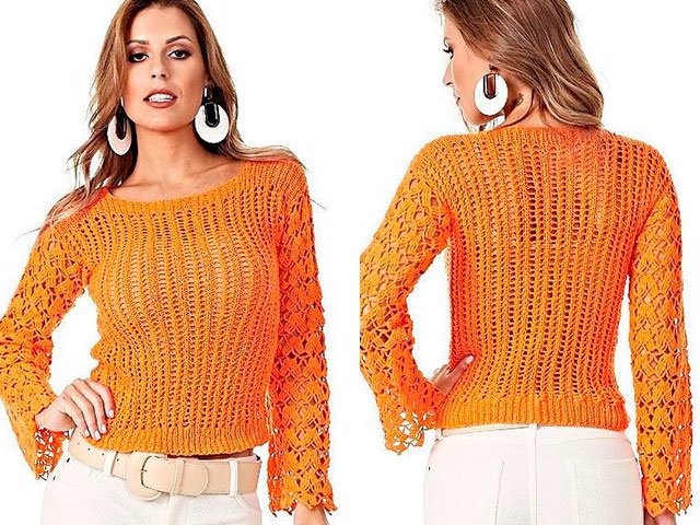 How to knit a sweater for beginners? It is best to combine two techniques: knitting and crocheting. We knit the next sweater for women with orange yarn, 3 mm knitting needles and the same hook.