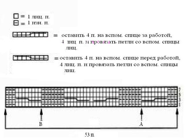 - Crossed loops 1 * 1 to the right (SK.P.): removes P. on additional. spoke from behind, L.P. from the left knitting needle, 1 L.P. with add. knitting needles. (Add.SP.)