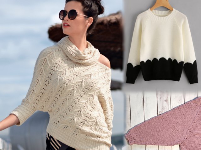 Often sweaters, tunics and pullovers with such sleeves knit from the bottom backs and shelves. Starting with large parts of the product, a straight web is knitted before the armhole begins. Here, adding loops can be done immediately, but you can dial the desired number of loops at the beginning of one row and repeat this in the next row, and another required number of times.