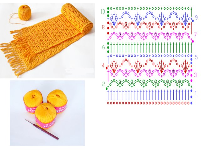 Knitted scarves are always in trend, especially with the onset of cold. Everyone wants to have a unique and beautiful warm scarf. Today we will consider different patterns and descriptions of knitting scarves for all occasions. In order to crochet an openwork scarf, we need: a hook, yarn, scissors.
