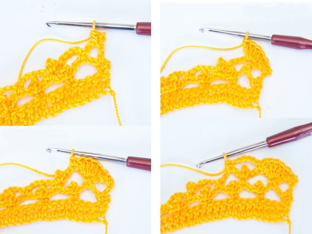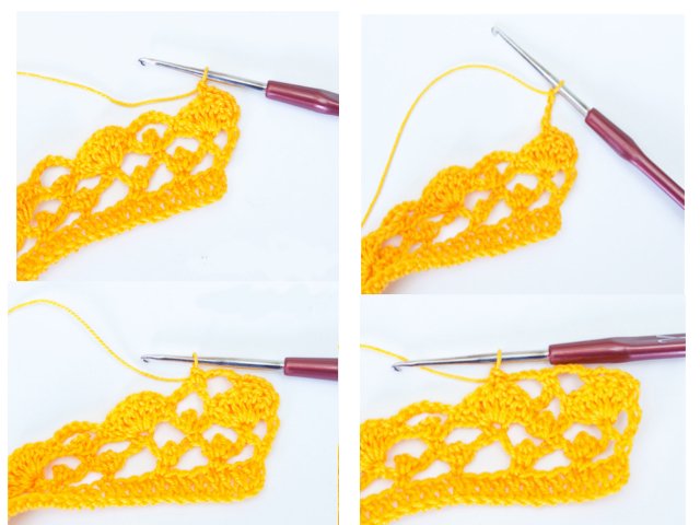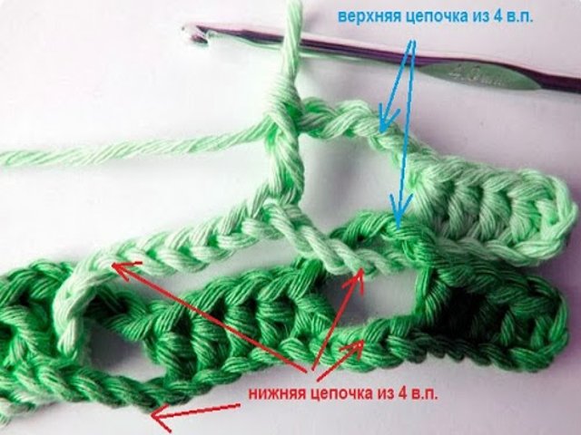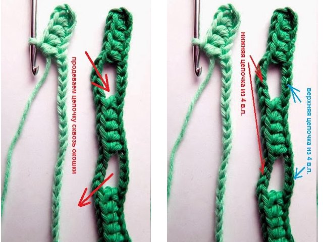 5. We make the river. similar to the 1st, given that the chain is threaded through the windows before. R. This means that 2 adjacent rows will cling to each other in a chain of 4 vp