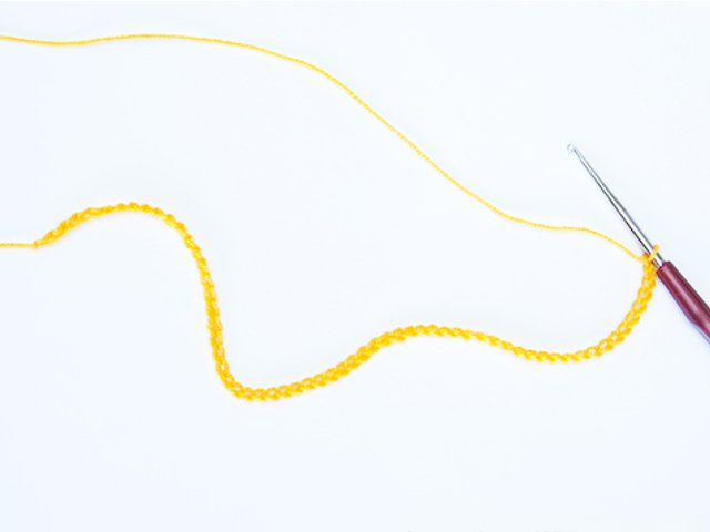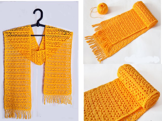 Let's get back to knitting our scarf. The length of our scarf: 18 cm. * 170 cm. For work, we need to purchase: yellow yarn (cotton) - 150 g., Hook No. 2.
