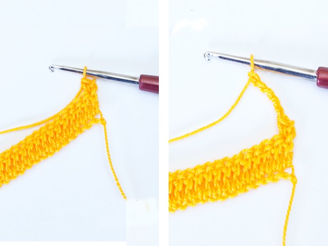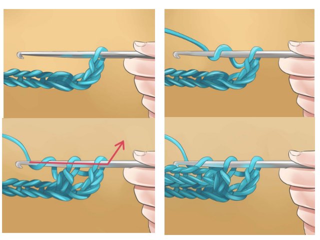 3. Half Column (half a century) - having thrown the working thread onto the hook, we introduce it in front into the 3rd loop, and pull the thread through all 3 loops, as a result, one loop remains on the hook.