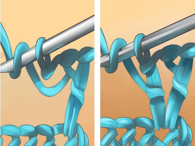 e. Grab the thread and pull through 8 p., 2 p. should remain on the hook.