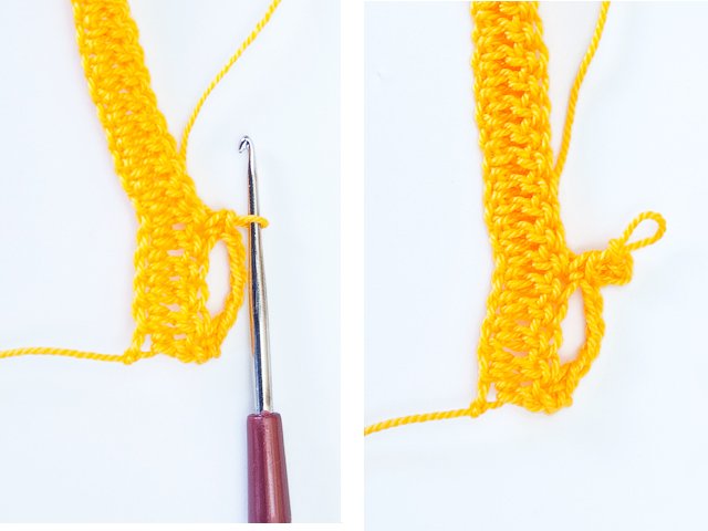2. We do 1 tbsp. n in the fourth, fifth, sixth, seventh cp chains.