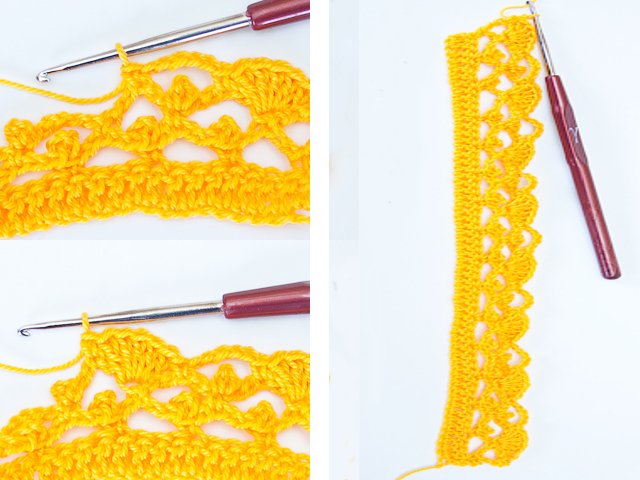 12. Repeat until the end of the product. Each row is repeated. At the end of each row we do 3 vpp