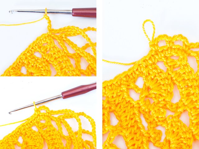 3. The third p. prov. all st.s., skip 1 p. when we approach the loops with st.s.