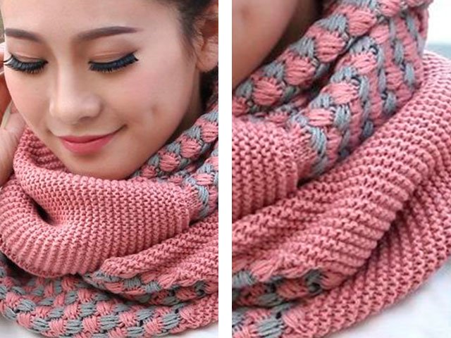 Beautiful collar in pink and gray for coziness and comfort this winter. It looks more like a large collar than a scarf. But this is also its charm - it is very warm and well protects from wind and frost. So, we proceed to the knitting process.