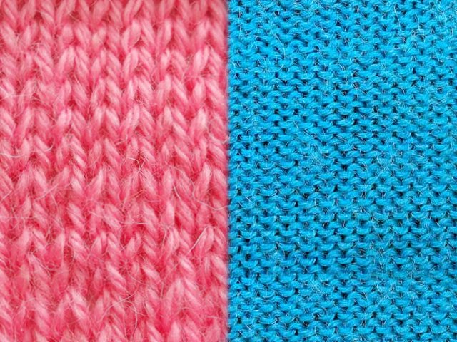 A distinctive feature of hosiery is that it is one-sided, namely, it has the front and the wrong sides, which differ in the pattern. These parties are called front and wrong side. The front surface consists of vertical looped posts. The wrong surface is the horizontal arches of loops that resemble a thinner and denser garter stitch.