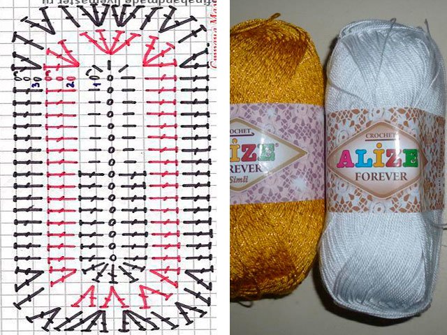 For this “masterpiece” you will need thin white cotton yarn (100% cotton, 50g / 150m.), Hook number 2 and 3 hours of free time.